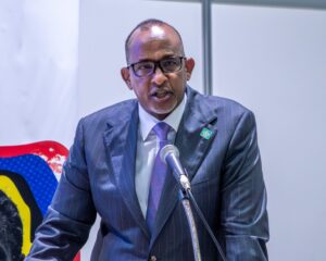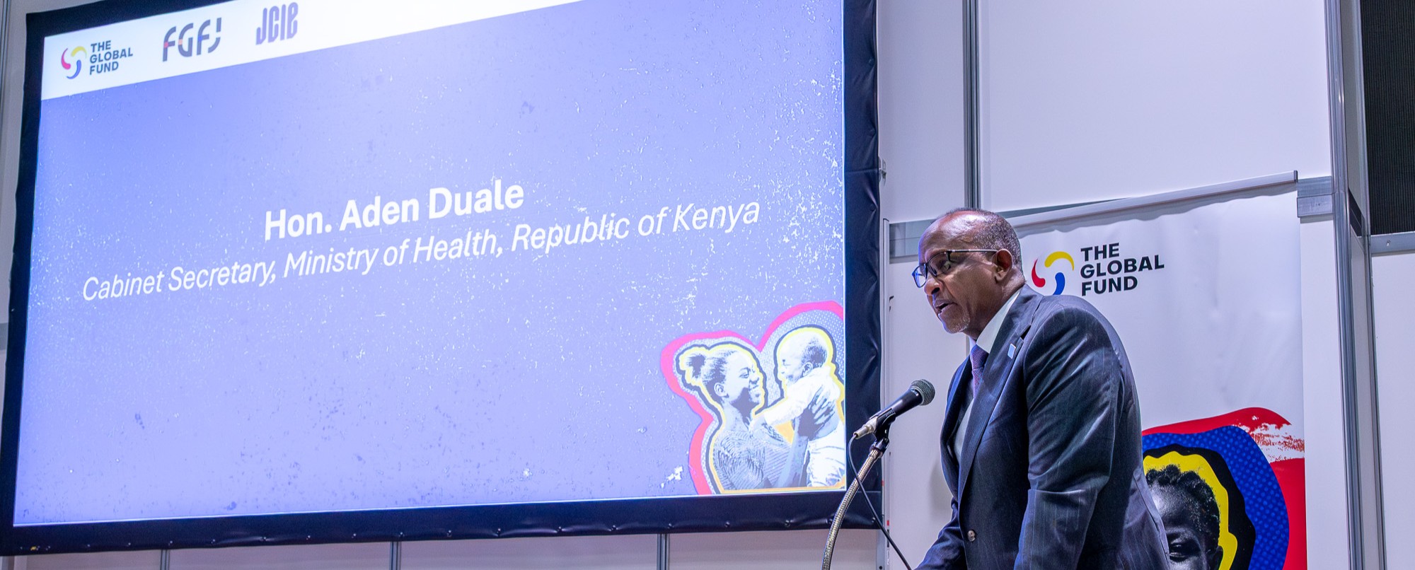 基調講演に登壇したケニアのアデン・ドゥアレ保健大臣は、保健財政はアフリカ大陸にとって最も重要な課題の一つであると述べ、ケニアが取り組む保健財政改革の3本柱として、(1) 国内資金動員の強化、(2)プライマリーヘルスケアの優先化を通じたUHCの推進、(3)ソーシャルインパクトボンドや医療保険など民間のイノベーションを活用する官民連携の強化を挙げ、それらの進捗を紹介しました。ドゥアレ大臣は、日本のUHC達成の経験と保健システム強化への投資は、アフリカにとって貴重な教訓の宝庫であると述べ、我々全員がこの基盤を活用し、アフリカ・日本保健ファイナンス・アクセラレーターを設立すべきであると提唱しました。大臣は、持続可能な保健ファイナンスは政治的・道義的要請である、なぜなら国民の健康は経済の基盤であり、同時に安全保障と我々共通の繁栄の礎でもあると結びました。