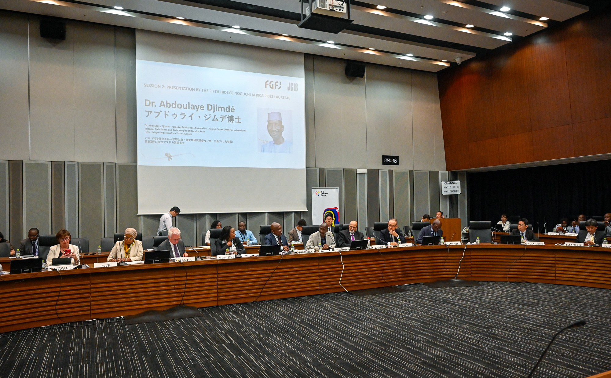 冒頭、マリの研究者として長年マラリア対策を牽引してきたジムデ博士の歩みについて、第4回同賞を受賞した南アフリカ・エイズ研究プログラム・センター所長のサリム・S・アブドゥル・カリム博士より、紹介がありました。ジムデ博士の圧倒的存在感、また、その人柄にも触れ、基礎研究から臨床応用、さらには国際的なネットワーク構築に至るジムデ氏の幅広い功績を称えました。
