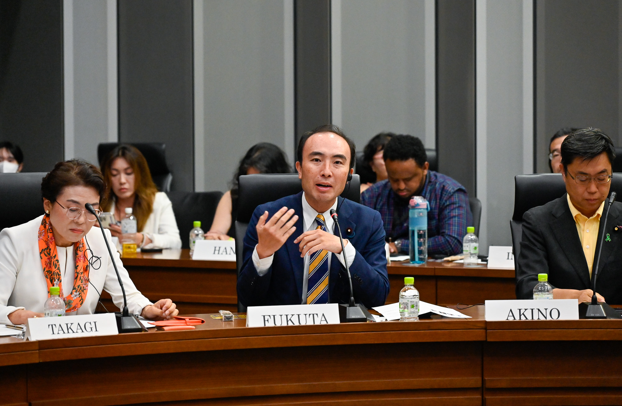 続いて秋野公造参議院議員は、ザンビアで導入が進められている国民健康保険制度の責任者とのディスカッションについて報告し、保険の制度設計もさることながら、保険制度ができても医療が提供できない事態を招かないよう、医療にアクセスできない人への対応や、様々なデバイスやAIを駆使した医療提供体制も整えていくことが極めて重要だと力を込めました。